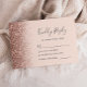 A borda esquerda desta elegante placa de caixa RSVP de casamento moderna apresenta uma borda cintilante de falso prateado. O texto personalizável combina a escrita manual de cinzas de carvão e as fontes de impressão em um fundo cor-de-rosa pincelado. O verso apresenta um rosa dourado e um design de pincel correspondentes.