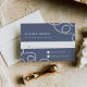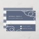 O cartão RSVP de casamento costeiro Elegante apresenta a data de resposta desejada e o texto de aceitação/declínio personalizado em um fundo de cinza azul ardente, acentuado nos cantos com laços de corda náutica trançada. Cartões à volta de faixas náuticas largas.