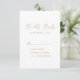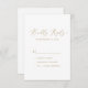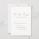 Este delicado cartão RSVP de caligrafia em ouro é perfeito para um casamento moderno. A design romântica minimalista apresenta uma magnífica e elegante tipografia amarela ouro champanhe num fundo branco com um aspecto simples e limpo.