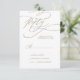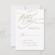 Esta simples carta RSVP de caligrafia em ouro romântica é perfeita para um casamento simples. O clássico design moderno apresenta espirais de rico e floreios brancos com elegantes e elegantes caracteres de falso champanhe de ouro falso. Nota: Este design não apresenta folha de ouro real. É um gráfico de alta qualidade feito para se parecer com folhas de ouro.