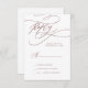 Esta simples placa RSVP de caligrafia rosa de ouro romântica é perfeita para um casamento simples. O clássico design moderno apresenta espirais de rico e turbilhões brancos com belíssima tipografia elegante e elegante, falsa rosa de ouro falso. Nota: Este design não apresenta folha de ouro rosa real. É um gráfico de alta qualidade feito para se parecer com folha de ouro rosa.