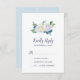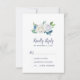 Este clássico cartão RSVP de flores brancas é perfeito para um casamento na primavera. O elegante design floral apresenta marfim macio e rosas brancas, peonias e crisântemo com toques de flores azuis de cor azul-rosada e folhagem verde.