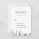 Esta lavanda rústica e uma simples placa RSVP de eucalipto é perfeita para um casamento simples e elegante ao ar livre. O design floral apresenta folhas de cor aquosa de eucalipto e verde com espinhos de flores silvestres roxas.