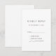 Este simples cartão RSVP de tipografia química é perfeito para um casamento moderno. O simples design apresenta uma tipografia clássica minimalista a preto e branco com um toque rústico. Personalizável em qualquer cor. Mantenha o design mínimo e elegante, como está, ou personalize-o adicionando seus próprios gráficos e trabalhos de arte.