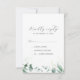 Esta elegante carta simples RSVP verde é perfeita para um casamento simples. O moderno elegante design apresenta uma disposição botânica natural de eucalipto, folhas e plantas com um sutil sotaque de hortelã verde-aquarela.