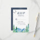 Este simples cartão RSVP da Montanha Rocky é perfeito para um casamento ao ar livre. O design apresenta uma paisagem de natureza selvagem pintada, azul e verde, com pinheiros de aquarela, pássaros e montanhas.