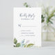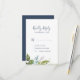 Este verão, um simples cartão RSVP verde é perfeito para um casamento elegante no meio do verão. O design botânico apresenta um arranjo exuberante de cor d'água pintada, eucalipto, verde e folhas verdes com sutis manchas de flores rosadas e cor-de-rosa.