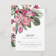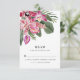 Celebre seu amor e escape ao paraíso com esta placa RSVP Tropical Perfeita para casamentos de praia e de destino costeiro, esta placa RSVP é cheia de toques elegantes e modernos, florais românticos e cores vibrantes. A trabalho de arte de aquarela impressionante inclui palmeiras verdes e folhas de monstera, orquídeas magenta e fuchsia brilhantes e flores de hibisco rosadas e cor-de-rosa. O verso inclui um padrão de coordenação. Encontre itens correspondentes na Coleção de Casamentos Florais Coloridos.