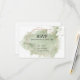Design muito sofisticada. O design abstrato exibe uma lavagem verde clara com aquarela sobre um fundo branco. Um quadro rosa dourado geométrico define o espaço de resposta RSVP. O texto é simples e chique.