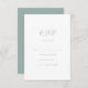 Este cartão verde de RSVP é perfeito para o seu clássico casamento verde moderno minimalista neutro e neutro. O design apresenta a fonte básica mínima contemporânea e a delicada caligrafia formal do chic. Está certo de completar sua queda de conto de fadas pastel, verão, primavera ou casamento outono. Mantenha-o como está, ou escolha personalizá-lo com seu próprio trabalho de arte ou fotos!