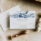 Projetada para coordenar com nossa coleção de casamento Wild Azure, esta elegante placa de RSVP botânica de inverno apresenta um spray de folhagem azul que cobre sua data de resposta desejada e aceita e declina a redação.