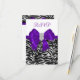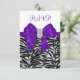 Elegante zebra roxa com cartão RSVP de arco roxo de joia de diamante. Personalize com sua escolha de estilo de fonte e cor de fonte.