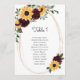 Estes Gráficos de Número de Mesa de Girassol e Rosas são perfeitos para um casamento de estilo rústico. Personalize com seus números de tabela e nomes de convidado. O design apresenta girassóis e rosas de cor d'água com estrutura oval de sotaque dourado.