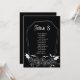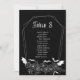 Ponha o tom para uma comemoração assombrosamente romântica com esta placa gótica de números das mesas, com um arranjo dramático de rosa preto, morcegos voadores, e uma moldura de tombstone. Perfeito para temas inspirados no outono ou no Dia das Bruxas, este design ousado e humilde ajuda os seus convidados a encontrar os seus lugares no estilo assustador. Totalmente personalizável — personalize o número da tabela e a lista de convidados para ajustado do seu evento.