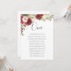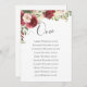 Cartão de placa de mesa editável com rosas florais de cor d'água burgundy. Personalizar com nomes de convidado e número da tabela.