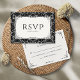 Esses cartões de resposta RSVP de 5 pol x 3,5 pol de casamento apresentam um estilo gótico vintage com um lugar preto e branco. A parte traseira tem espaços reservados com linhas para o convidado preencher seu nome e selecionar sua escolha para participar.