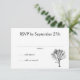 Placas rsvp de árvore simples, preto e branco. Placas de resposta brancas de tamanho 3,5x5 em paleta neutra, com tema da natureza. Use este cartão de resposta para casamentos florestais ou qualquer evento.
