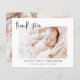 Budget Simple Baby Obrigado Elegante Colagem de Fotos que tem uma foto na frente e 4 Fotos na parte de trás. As cartas contêm uma tipografia cursiva escrita moderna, escrita à mão, que é elegante, simples e moderna para ser usada por um bebê recém-nascido ou por uma menina enviada pela mãe e pelo pai da criança criança para a família e os amigos.