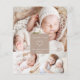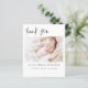 Budget Simple Baby Obrigado Elegante Colagem de Fotos que tem uma foto na frente e 4 Fotos na parte de trás. As cartas contêm uma tipografia cursiva escrita moderna, escrita à mão, que é elegante, simples e moderna para ser usada por um bebê recém-nascido ou por uma menina enviada pela mãe e pelo pai da criança criança para a família e os amigos.