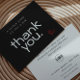 Design moderno minimalista em preto e branco para o design de cartão ''Obrigado'' da sua empresa. Selecione o botão '' Personalizar'' para alterar o tamanho do texto, a cor do texto como quiser.