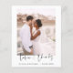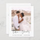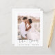 Casamento de Orçamento Obrigado Cartões que têm uma foto na frente e atrás. Os cartões de agradecimento contêm uma tipografia cursiva moderna, escrita com letra de mão, que é elegante, simples e moderna para usar após a celebração do dia do casamento.