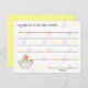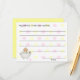 Cartões de jogos de chá de fraldas adoráveis usados como cartas de conselho para a mãe ser. Bolinhas amarelas claras e cor-de-rosa contra um fundo branco, com trabalho de arte primitivo doce país de um bebê, numa banheira, no canto inferior esquerdo da placa. O texto no topo diz: "Meu conselho é a nova mãe." Linhas negras no cartão, para todos escreverem suas anotações para a mãe, e um lugar para sua assinatura no final. Peça aos hóspedes que leiam seus conselhos em voz alta para tornar esta atividade mais divertida. Uma maravilhosa memória de guardar para o álbum de fotos do bebê. Convites de chá de bebê correspondentes disponíveis.