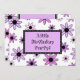 Convite para a festa de aniversário de 12 de uma menina com ilustrações roxas, rosa e negras divertidas, na moda e bonito, totalmente personalizáveis com os detalhes de sua festa.