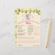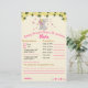 Previsões e conselhos de bebês é um jogo engraçado, ideal para a sua festa de chá de fraldas, você e seus convidados adorarão jogar. As cartas são desenhadas com um elefante de desenho animado fofo em rosa e cinzas com flores amarelas e fundo cor-de-rosa.