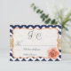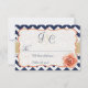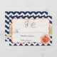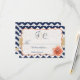 O amor está florescendo! Estas maravilhosas cartas do jardim de chevron, RSVP, misturam chic boho com glamour elegante para celebrar sua bela ocasião. Perfeito para qualquer resposta, inserção, RSVP, menu ou outra necessidade de design de placa pequena, você pode personalizar o texto e as iniciais opcionais neste design para se adequar ao seu estilo. Para o seu marinho clássico azul e design de placa de coral, os gráficos florais e o fundo podem até ser alterados se necessário. Emparelhe com nossos convites correspondentes e etiquetas de endereço para um conjunto concluído. Design © Lil Duck Duck, LLC