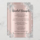 Um belo cardápio de noiva para a celebração do seu chá de panela. A placa de menu elegante apresenta um cabeçalho de caligrafia com uma apresentação minimalista do menu. também, as cartas vêm com gotas de brilho e um fundo moderno rosa dourado.