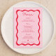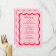 Placas de menu de Festa de casamento retroativas, cor-de-rosa e vermelha, ondulada