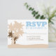 Placas de Modelo RSVP de Palmeiras de Casamento de Praia. Casamento na praia RSVP/cartões de resposta. Azul claro, castanho e castanho com silhuetas de palmeiras e texto de modelo para que você possa facilmente adicionar sua própria data de casamento e responder ao texto.