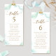 Ajude seus convidados a encontrar sua mesa com este lindo cartão de planos de assentos com nomes de convidados. Manchas impermeáveis e delicadas de aquarelas, com placa de mistura de azul empoeirado, turquesa e tons verdes macios. Dois lados no caso, você gostaria de enforcá-los e ter convidados na frente e atrás para procurar seus nomes. Dourados detalhes em manchas de tinta. Uso de detalhes modernos de caligrafia escrita à mão. Parte da nossa coleção "Airy Blue and Green Watercolor" com uma variedade de produtos de coordenação disponíveis.