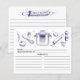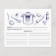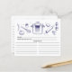 Cartão de receitas com ferramentas de cozinha, desenhado à mão, contendo um pino rolante, pote, moinho de pimenta e uísque com vegetais dispersos em azul. Sacudir o cartão de receita para o espaço.