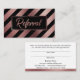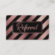Essa design rica e vívida apresenta uma folha de ouro rosa e preto, em negrito e riscado na diagonal, na frente. O centro é mascarado por um retângulo preto com bordas douradas de rosa duplo, melhorando a sofisticada design. No centro do crachá, usando uma bonito e moderna fonte de escrita, está uma camada gráfica tipográfica que diz "Referência". Esta camada de texto gráfico foi embelezada com o mesmo efeito rosa ouro que usei nas listras e bordas. No verso, eu configuro todos os campos de modelo que você precisará para oferecer os detalhes e os termos aos seus clientes. Use os campos modelo para adicionar seus próprios detalhes e fazer as mudanças de texto necessárias. Você também pode clicar para personalizar ainda mais se quiser alterar fontes, tamanhos ou posições de quaisquer elementos. // Ideal para proprietários de salões, cabeleireiros, esteticistas, manicuristas e técnicos de unhas, maquiadores, terapeutas de massagem, treinadores pessoais, treinadores e muitos outros em indústrias de curandeiros e serviços pessoais que apreciam honrar referências comerciais. // Por favor, não hesite em contactar se tiver pedidos especiais ou necessitar de assistência personalizada. // Concebida por Melody Watson para Paper Muserie.