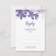 Estes cartões de resposta do casamento apresentam flores roxas de orquídeas. Fazem parte de uma coleção que inclui artigos de papelaria e presentes de casamento. Visite as páginas de coleta em nossa loja para ver a gama de cheios de casamentos e produtos de noiva que você pode personalizar para o seu casamento.
