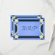 Rustic Blue Floral © Sunny Mars Designs - Personalizável vintage personalizado rusty azul elegante cartões de resposta RSVP de casamento com elegante borda de fita azul escura, flores brancas bonito modernas em fundo de papel pergaminho antigo.