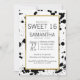 Moderno, elegante e simples contadores de tinta preta e branca e contorno de ouro imprimido, convites de festas de celebração de 16 anos doce. Este design clássico e sofisticado é perfeito para a garota de aniversário de classe, tendências e na moda. Personalize com sua própria mensagem na frente e um monograma personalizado inicial no verso. Todas as impressão de fotos.