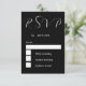 Cartões de RSVP preto e branco minimalistas para seus convidados de casamento. Esses cartões serão personalizados com seus próprios detalhes no momento do pedido