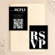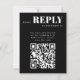 Procurando por um moderno e elegante RSVP Cards para o Código QR de Casamento? Olhe para nossas placas RSVP Brancas Na moda para o Código QR de Casamento. Apresentando uma caligrafia ousada que adiciona um toque de sofisticação, este rsvp preto-e-branco com código qr oferece uma aparência simples e limpa. Você pode adicionar um URL para gerar um Código QR. A paleta monocromática melhora a atração do eterno. Este rsvp minimalista tem uma reviravolta moderna que se liga para cativar aqueles que têm um olho para a sofisticação sutil. Cartão de código qr de casamento do rsvp minimalista!