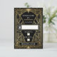Cartões RSVP de Casamento de Arte Preta e Dourada - apresenta um quadro de gradiente dourado impresso com sotaques brancos brilhantes. O esquema de cores é ouro e preto com um toque de branco. Faça uma atualização do estoque básico de cartões para algo brilhante para trazer o brilho nestes convites de arte nouveau projetados. Você pode fazer isso com a direita acima. Cada RSVP vem com um envelope branco equipado. Veja o convite de casamento abaixo.