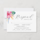 Estas cartas de RSVP de casamento de destino apresentam um design elegante, mas moderno. Um conselho lateral de flores tropicais enquadra seus detalhes personalizados. Use os campos de modelo para DIY (DIY) em seu texto personalizado. A placa se reverte para uma cor rosa vibrante. Para ver as cartas de RSVP de casamento com opções de menu visite www.zazzle.com/dotellabelle Arte e design de aquarela únicas por Victoria Grigaliunas do Do Tell A Belle.