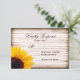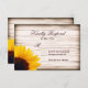 Rustic Country Sunflower Barn Wood Wedding RSVP responde cartas com design de fundo de conselho de madeira angustiada (design impresso na sua escolha de papel) e um girassol amarelo e marrom bonito no canto inferior esquerdo de ambos os lados. Basta adicionar seus próprios detalhes do cartão de resposta. Estes são excelentes para casamentos rústicos de campo e casamentos de celeiro. girassol, girassóis, florais, flores, rústica, vintage, país, antiga, angustiada, vintage, cartões de resposta, cartões de resposta, cartões de casamento de países rústicos, rsvp, cartões de casamento rsvp de país, madeira, madeira de celeiro, madeira de celeiro, conselhos de madeira