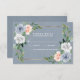 Placas RSVP de Casamento de Pincel Dourada Dusty Blue Blush - design apresenta um fundo azul poeirento de cor d'água com uma moldura dourada cortada em eucalipto e verde com elementos florais em cinza/branco, azul poeirento e rosa/pêssego rosado. Exibir a coleção correspondente nesta página para localizar produtos correspondentes.