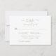 Complemente a sua festa de casamento verde de sábio com estas placas RSVP elegantes que apresentam a data de resposta desejada e a formulação de aceitação/recusa personalizada. Convide os hóspedes a indicar as preferências de entrada e adicione as opções de refeições personalizadas. Personalizar facilmente online. Itens correspondentes disponíveis para complementar este cartão RSVP de casamento verde de sábio com um roteiro moderno.