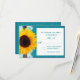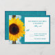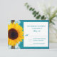 Este cartão de resposta RSVP de casamento é perfeito para qualquer casamento. Apresenta um fundo azul-aqua de cor chata com rendas impressas e uma fita de fio ao lado com um girassol amarelo brilhante. Perfeito para um casamento no campo ou no celeiro. Basta adicionar sua data de RSVP ao cartão. O fio e o lugar são apenas designs impressos. Não é um lugar ou fio. Itens Correspondentes: Se você precisar alterar o tamanho ou a fonte do texto, poderá usar o botão "Personalizar" para mover as coisas, redimensionar o texto e personalizá-lo completamente. Caso contrário, se você gosta do layout e da fonte como está, então apenas insira seus detalhes de casamento nos pontos de modelo. cartões rsvp de casamento do país, cartões rsvp de casamento de girassol, cartões rsvp de girassol de chá, girassol e renda, aqua, turquesa