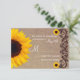 Este cartão de resposta RSVP de girassol do país rústico é perfeito para qualquer casamento no país rústico. Ele apresenta um fundo de papel de vintage rústico com um impressão de rolagem floral de ornamentado com dois pequenos girassóis em cada extremidade. Tem um grande girassol amarelo brilhante na outra ponta do convite. Perfeito para qualquer casamento de um país ou celeiro. Basta adicionar sua data de RSVP ao cartão. Se você precisar alterar o tamanho ou a fonte do texto, poderá usar o botão "Personalizar" para mover as coisas, redimensionar o texto e personalizá-lo completamente. Caso contrário, se você gosta do layout e da fonte como ele é, então apenas insira seus detalhes de casamento nos pontos de modelo.