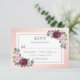 Elegante burgundy floral e cartão de casamento esfarrapado. Itens correspondentes disponíveis.