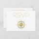 Cartões RSVP de casamento náutico brancos com bússola dourada e texto personalizável