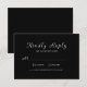 Simplifique seu planejamento de casamento com nossos Cartões RSVP de Casamento Negro Simples e Limpo! Apresentando uma elegante caligrafia de script e um design sem cluster, essas placas emparelham um eterno branco em um fundo preto para sofisticação subestimada. personalizável com data de vencimento de RSVP. Perfeito para casais modernos, esses cartões estão disponíveis como artigos impressos, garantindo uma coordenação perfeita com o tema do seu casamento. Fácil de editar e projetado para clareza, eles tornam a recolha de respostas sem complicações e na moda.